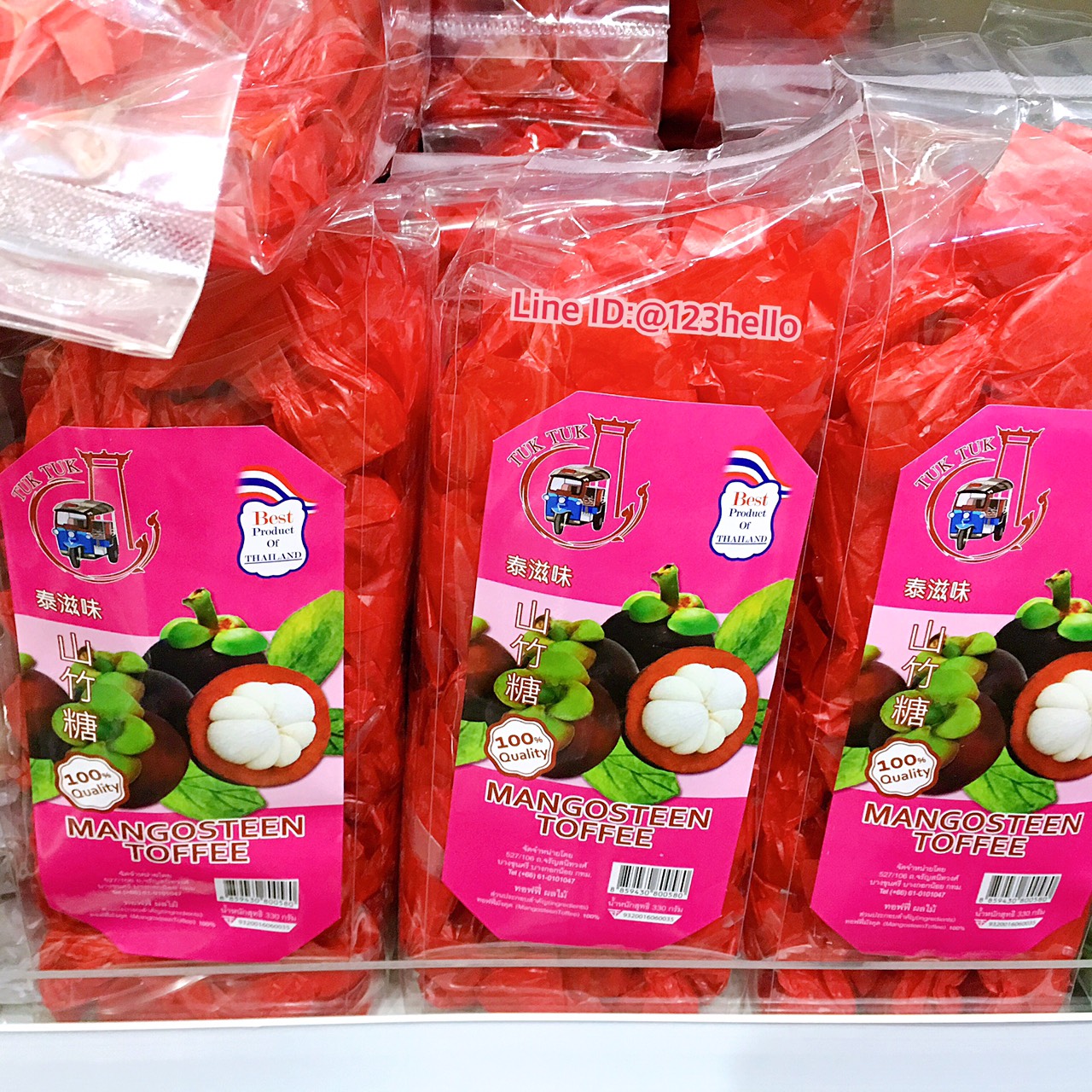 TUK TUK Mangosteen Toffee ทอฟฟี่ ผลไม้ รสมังคุด ลูกค้าชอบมาก ๆ ค่ะ สินค้าขายดี รสชาติหอม หวาน อร่อย ได้รสชาติของมังคุดแท้ เต็มคำ เน้น ๆ อร่อยถูกใจแน่นอนค่ะ